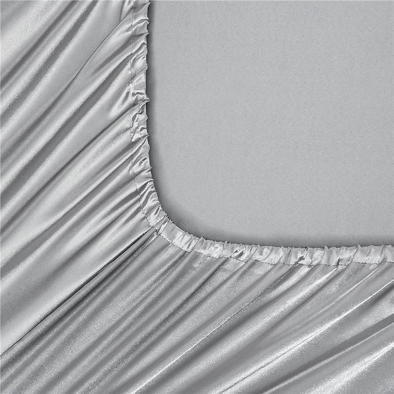 Cooling Satin Fitted Sheet Solid Color Mattress Cover with Elastic Band Bedsheet Single Double Queen King Size Fit Sheet 5