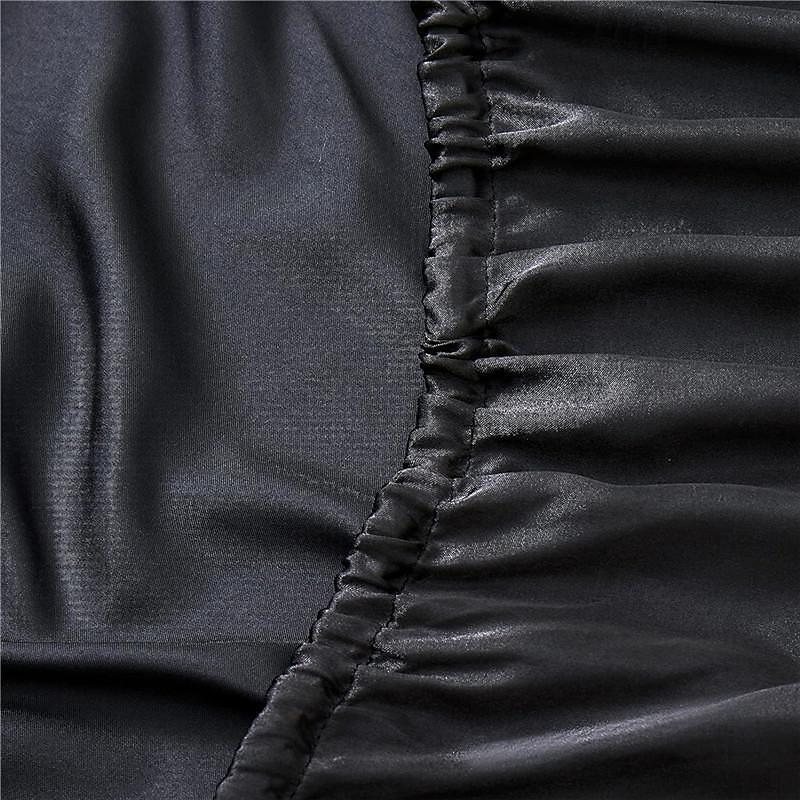 More information about Cooling Satin Fitted Sheet Solid Color Mattress Cover with Elastic Band Bedsheet Single Double Queen King Size Fit Sheet