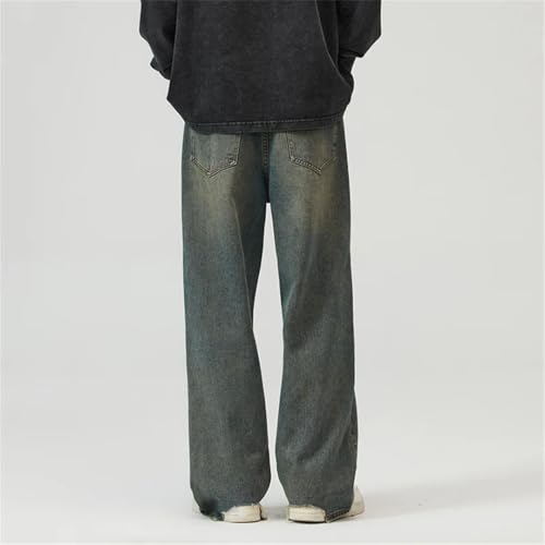 HOT ! Men's Retro Nostalgic Ripped Jeans Straight Loose Fashion Irregular Embroidery Jeans