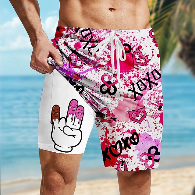 Men's Funny Lined Shorts 2 in 1 Board Shorts Swim Shorts Mid Waist Hawaiian Vacation Holiday Beach Wear Side Pockets With Compression Liner Elastic Drawstring Waist Designer Clothing Apparel 2