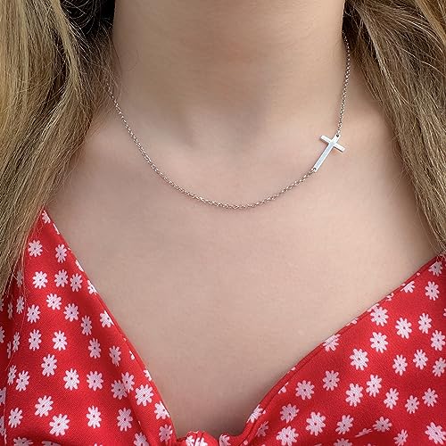 Sterling Silver Sideways Cross Necklace with Adjustable Rolo Chain and Faith Keepsake Card Gift For Women 1