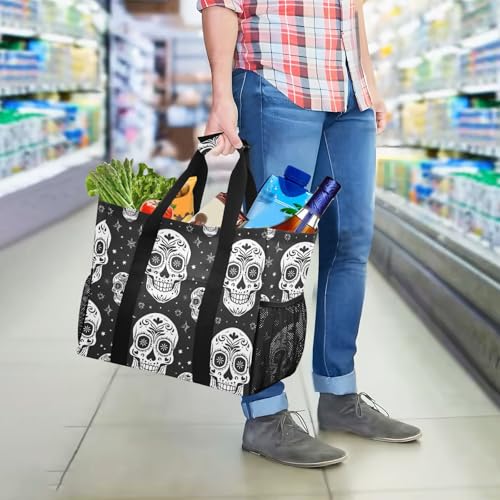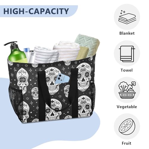 HOT ! ALAZA Dia De Los Day Of The Dead Muertos Skull Flower Seamless Waterproof Beach Tote Bags