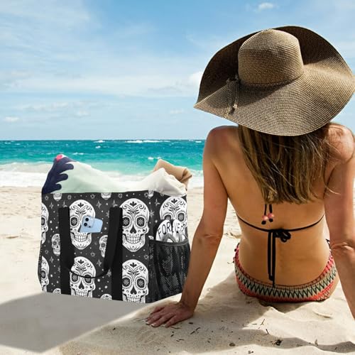 ALAZA Dia De Los Day Of The Dead Muertos Skull Flower Seamless Waterproof Beach Tote Bags 6