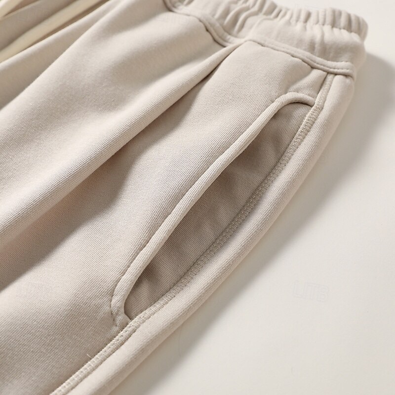 Men's Fleece-lined Athletic Pants Active Pants Active Joggers Full Length Outdoor Vacation Home Sports Fashion Navy Blue Beige Micro-elastic 15