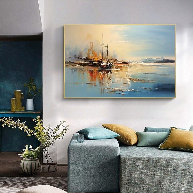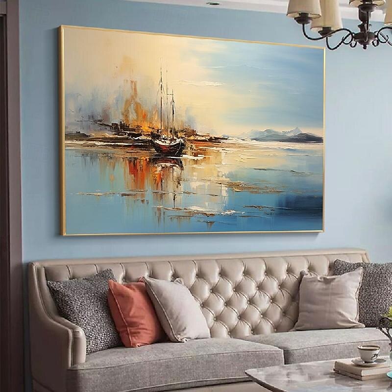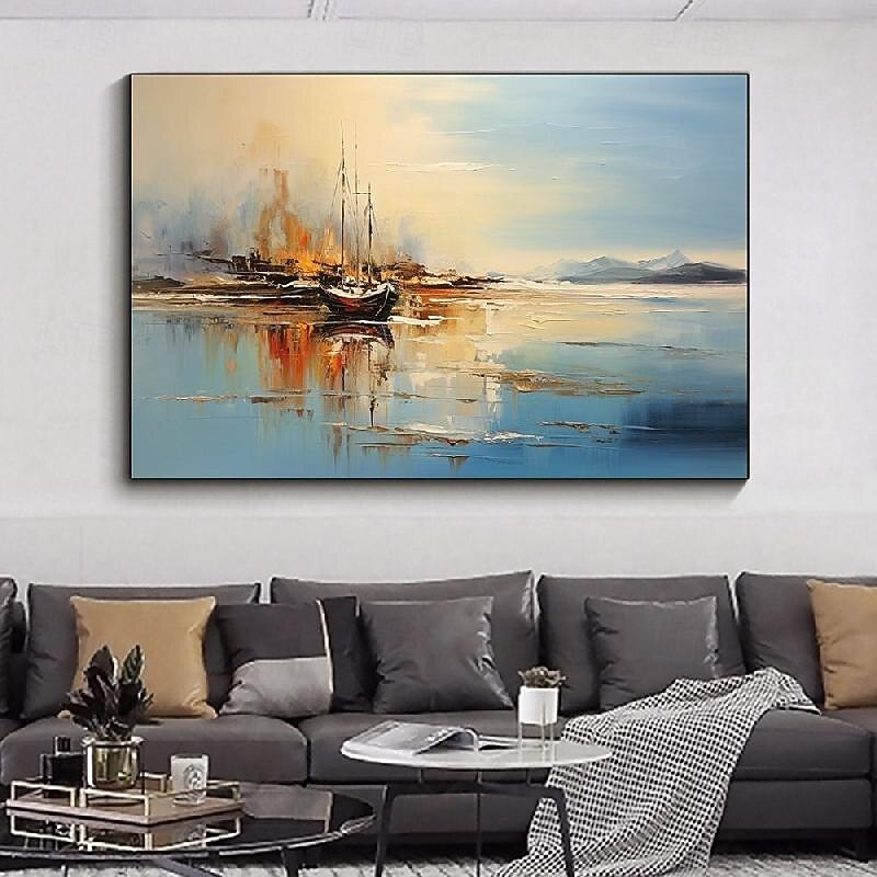 $116.99 - Abstract Coastal Landscape Oil Painting on Canvas Large Wall Art Original Blue Sailboat Art painting Ocean Art Custom Painting for Living Room bedroom wall Decor 2025. Shop for cheap Abstract Paintings online? Buy at lightinthebox.com on sale today!