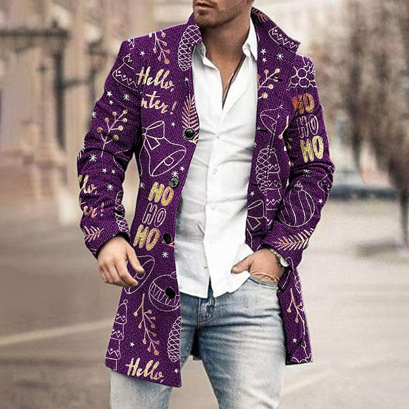 More information about Men's Letter Bell Winter Coat Overcoat Warm Comfortable Breathable Business Bootie Christmas Work Wear to work Pocket Print Fall & Winter Turndown Long Sleeve Black Wine Blue
