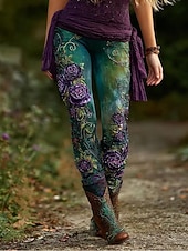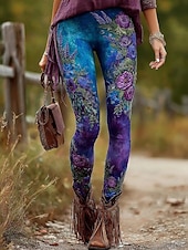 More information about Women's Leggings Vacation Vintage Fashion Full Length High Waist Floral Graphic Leaf Printing Thermal Warm Soft Breathable Stretchy Formal Vacation Street Violet Green Spring Fall Winter Slim Fit