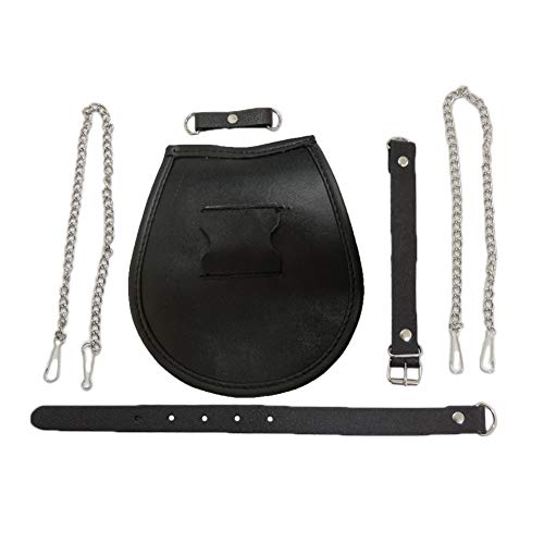 HOT ! SZCO Supplies Black Leather Scottish Kilt Sporran Laced Trim with Embellishments