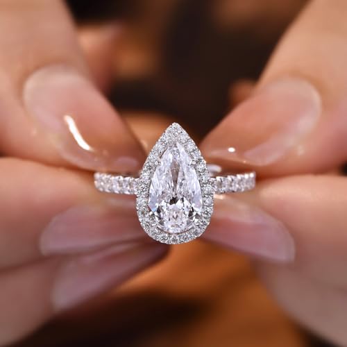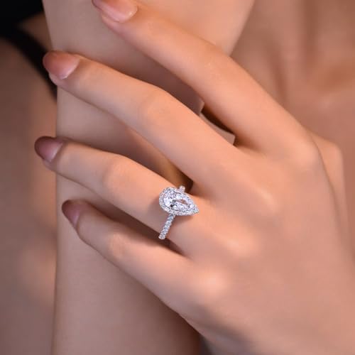 Engagement Rings for Women Wedding Promise Ring - Sterling Silver Rings for Women 1 Carat D Color VVS1 Pear Shaped Crushed Ice Diamond, 18K White Gold Plating Women's Diamond Rings Ideal Gift for Her 6