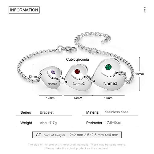 More information about Personalized Name Heart Bracelet with 1-6 Birthstones Custom Bracelet for Women Engraved Names Link Bracelets for Mother's Day Mom