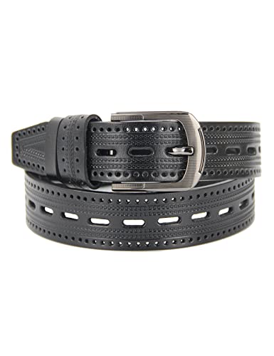 URAMAN Genuine Leather Dress Belt for Men Business Casual Hollow Out Western Country Cowboy Belts for Jeans Pants Black 3