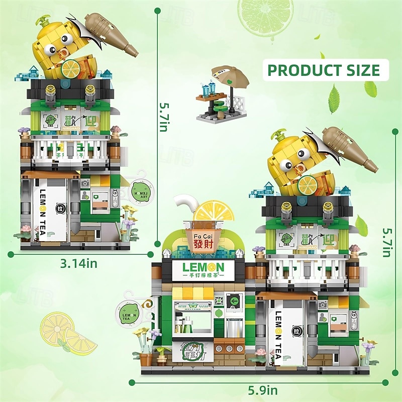 More information about Street View Lemon Tea Shop Mini Building Blocks MOC Creative Building Toys Model Set for Girls 6-12 Years Old 796 PCS Simulation Architecture Construction Toy Gift Idea for Kids Adults