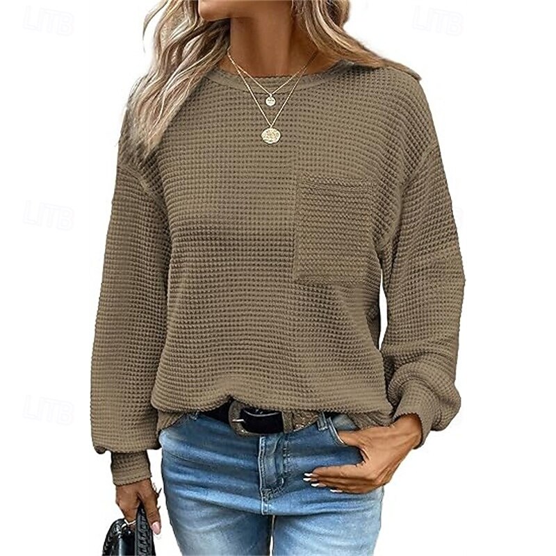 More information about Women's Texture Sweatshirt T Shirt Tee Top Plain Fashion Modern Long Sleeve Crew Neck Regular Tops Daily Going out Pocket Black White Brown Green Khaki Spring Fall