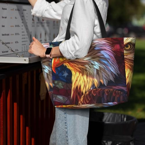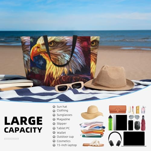 Geometric American Bald Eagle Print Beach Pool Bags Tote For Women Ladies Large Gym Tote Carry On Bag For Weekender Travel Waterproof 7