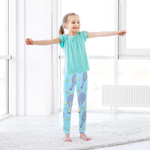 ALAZA Girls' Leggings Children's Yoga Pants Skinny Printed Dance Tennis Racket Blue Comfortable 4T 6