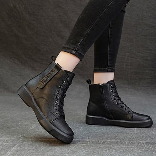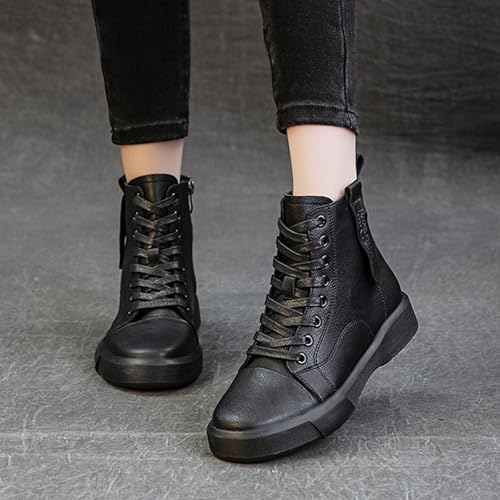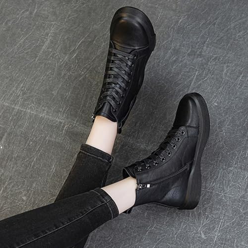 More information about Ankle Combat Boots for Women,Genuine Leather Lace Up Side Zipper High-Top Ankle Boots Casual Platform Boots (Black,8.5)