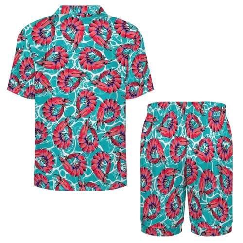 HOT ! Shrimp Mens Pajama Set Short Sleeve 2 Piece Sleepwear Button Down Tops And Shorts Loungewear Outfits