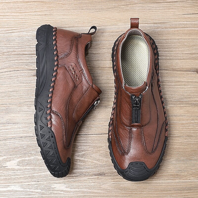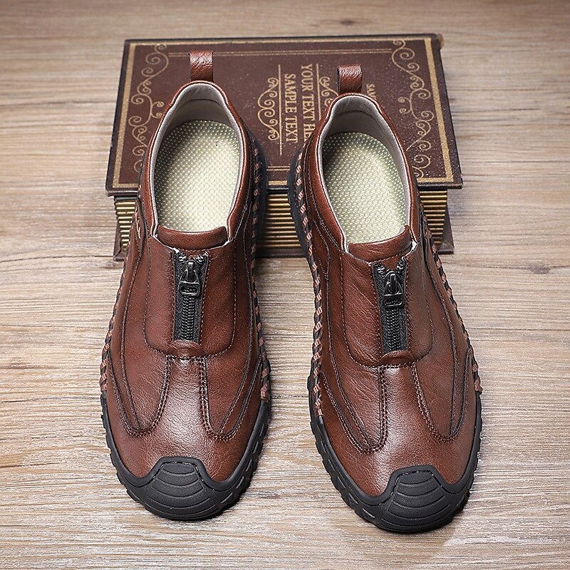 Men's Brown Slip-On Casual Shoes with Non-Slip Sole, Comfortable Outdoor Walking Loafers for Work and Travel 24