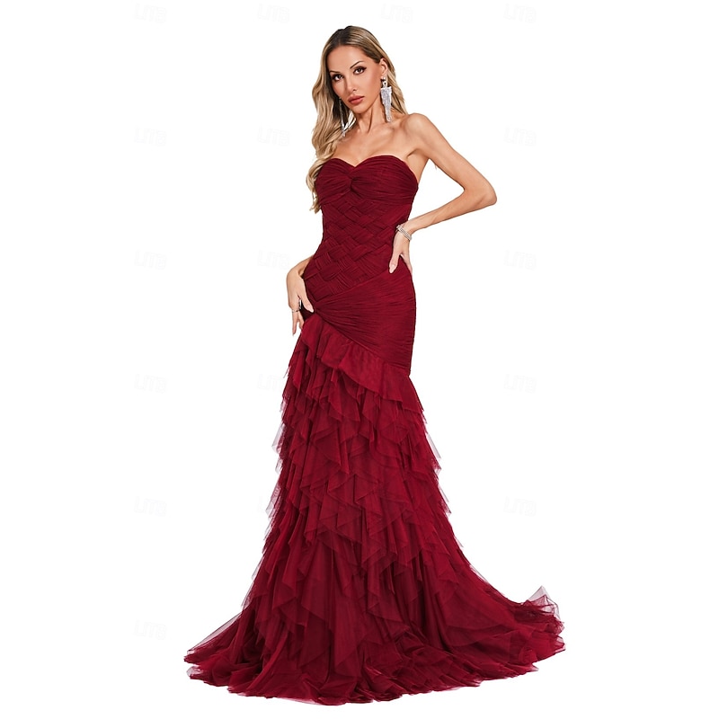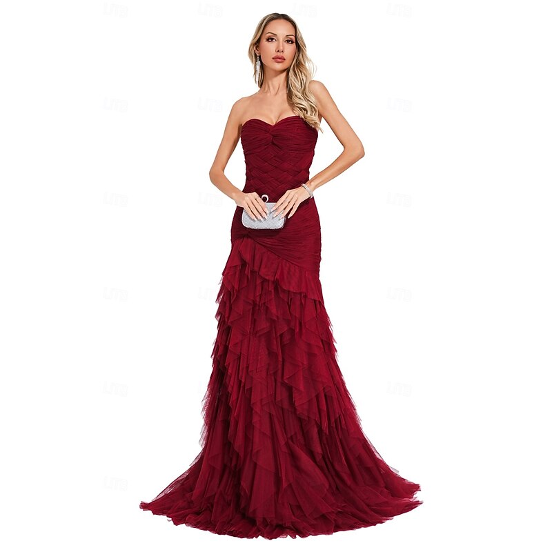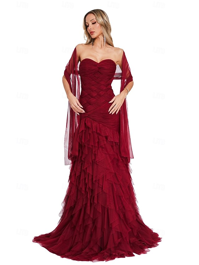 More information about Mermaid / Trumpet Evening Gown Elegant Dress Formal Prom Court Train Sleeveless Sweetheart Tulle with Pleats Shawl