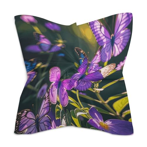 HOT ! Silk Square Scarf Purple Butterflies Neck Scarf for Women 18"x18" Hair Scarf Lightweight Large Shawl Wrap Silk Scarves for Hair Wrapping Sleeping Silk Neckerchief