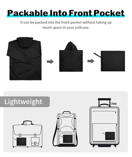 • Packable & Portable: Folds into its front pocket—slip it in your car, golf bag, or emergency kit. Perfect for sudden rain during hiking, travel, or errands. Roomy pockets hold your phone, wallet, keys. Lightweight and practical, this mens rain jacket works for everyday needs
