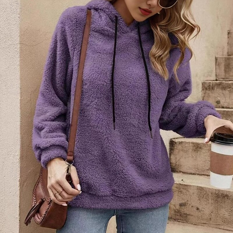 More information about Women's Double Fuzzy Sweatshirt Thick Warm Drawstring Long Sleeve Sports Solid Color Top For Outdoor Travel Vacation Activewear