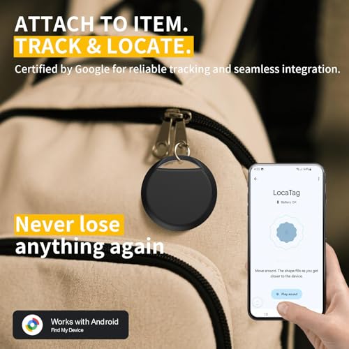 • Android Smart Air Tracker Tag Tracker: It is a Google certified location tracker that can be used with Google Find Hub/"Find My Device" on Android phones (Android 9 or higher, not compatible with IOS or HUAWEI). Attach this Android tracker tag to your frequently lost items and let it help you find keys, wallets, bags, suitcases, toys etc.