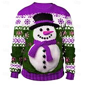 More information about Ugly Christmas Sweater Men's Snowman Snowflake Pullover Sweater Jumper Knitwear Crewneck Casual Vacation Daily Festival 3D Print Keep Warm Long Sleeve Spring Fall Winter Red Purple Brown