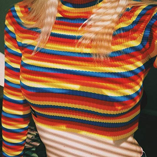 More information about Autumn and Winter Sweaters Keep Warm, Womens Autumn Long Sleeve Turtleneck Sweater Colorful Rainbow Stripes Short Crop