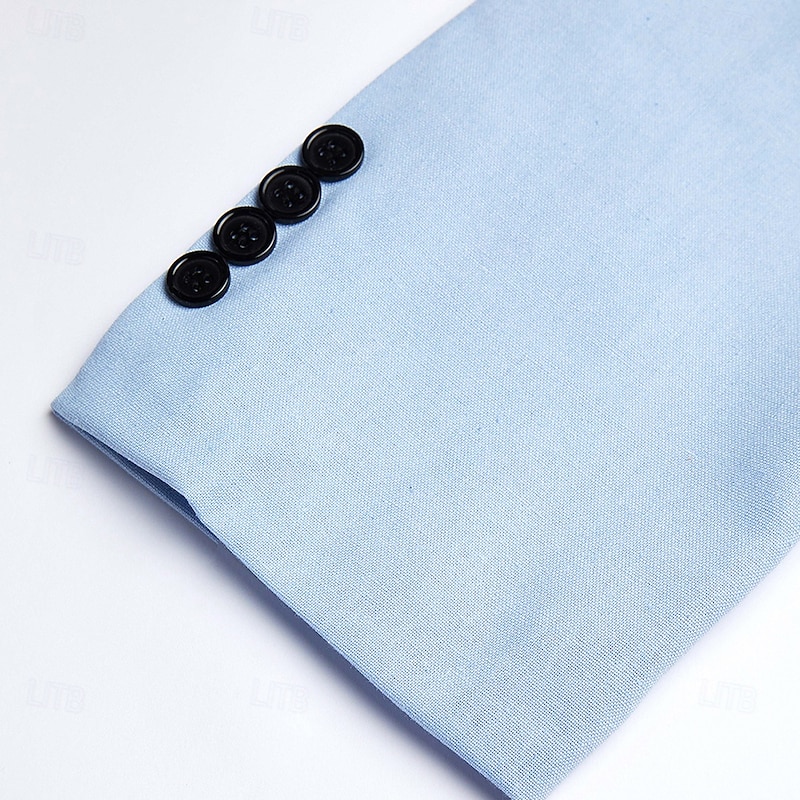 More information about Men's Linen Blazer Sport Coat Notch Collar Fashion Casual Solid Colored Blazer Lake blue Sky Blue Dark Grey Standard Fit Single Breasted One-button