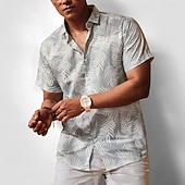 More information about Men's Leaf Tropical Plants Summer Hawaiian Shirt Aloha Shirt Short Sleeve Hawaiian Resort Vacation Holiday Beach Wear Summer Spring Turndown Button Up Gray