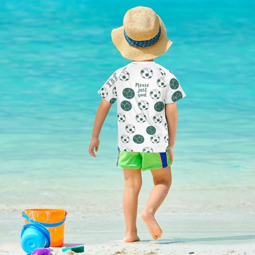 HOT ! ALAZA Kids Rash Guard Boys Toddler Swim Shirts Short Sleeve Green Football White UPF 50+ 3T