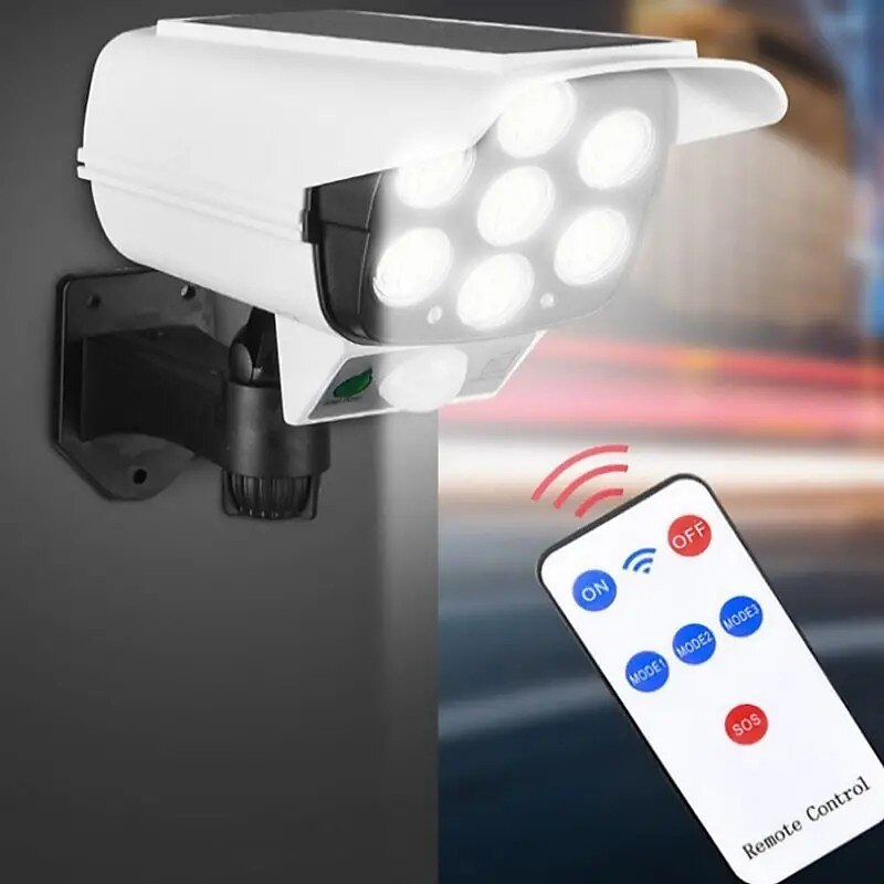 HOT ! LED Solar Wall Light Outdoor Simulation Monitor Lamp Solar Powered Garden Light with Human Body Sensor Home Surveillance Simulation Smart Outdoor Street Light Suitable for Garden Gates