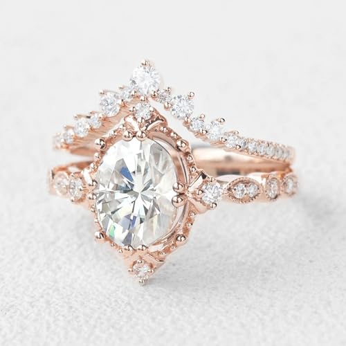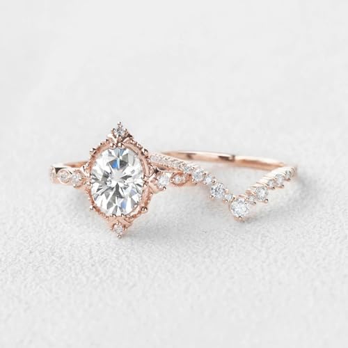 Vintage Moissanite Wedding Ring Set for Women 1.5CT Moissanite Bridal Ring Set S925/10K/14K/18K White Yellow Rose Gold Vintage Engagement Ring Set for Wife Bridal 5