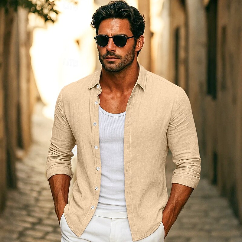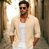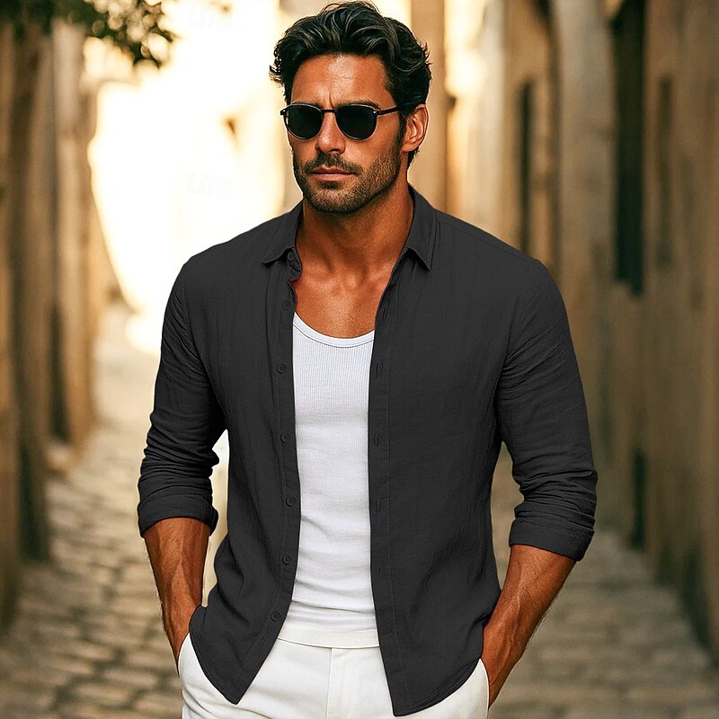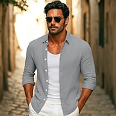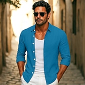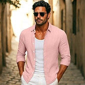 More information about Men's Shirt Linen Shirt Summer Shirt Beach Wear Button Up Shirt Plain Vacation Casual Black White Pink Royal Blue Long Sleeve Collar Summer Spring Clothing Apparel Plain