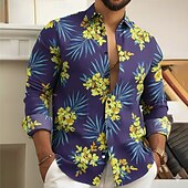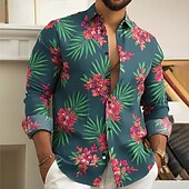 More information about Men's Plants Palm Leaf Flowers Shirt Button Up Shirt Long Sleeve Fashion Casual Holiday Casual Daily Spring Fall Turndown 3D Print Collared Shirts Blue Green Dark Blue
