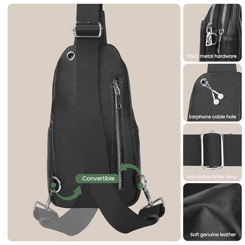 • Genuine Leather Sling Bag: Crafted from premium top grain pebbled cowhide leather, this befen sling bag boasts durability, scratch-resistance, and a luxurious soft touch. Enhanced with sleek silver metal hardware and a smooth zipper, this crossbody bag is designed to effortlessly withstand daily wear and tear