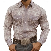 More information about Men's Intricate Floral Flowers Shirt Western Shirt Cowboy Shirt Long Sleeve Vintage Retro Outdoor Casual WorkWear Spring Fall Turndown Front Two Pockets Linen Like Shirt Button Up Shirts Blue Light