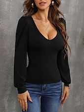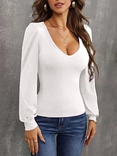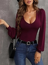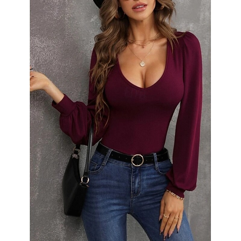 More information about Women's Cardigan Elegant Cute Sexy Pure Color U Neck Knitted Lantern Sleeve Long Sleeve Regular Tops Knit Daily Going out Wine Red Black Fall