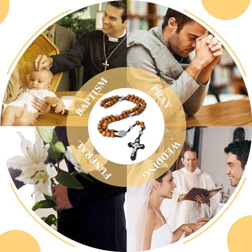 • Sacred Design:The original wood-colored rosary beads are paired with metal and the Jesus cross to form a delicate necklace. The rosary is made of solid pine, and each rosary is carefully polished to ensure its round and smooth appearance. Hand knitting is durable and gives you a good experience