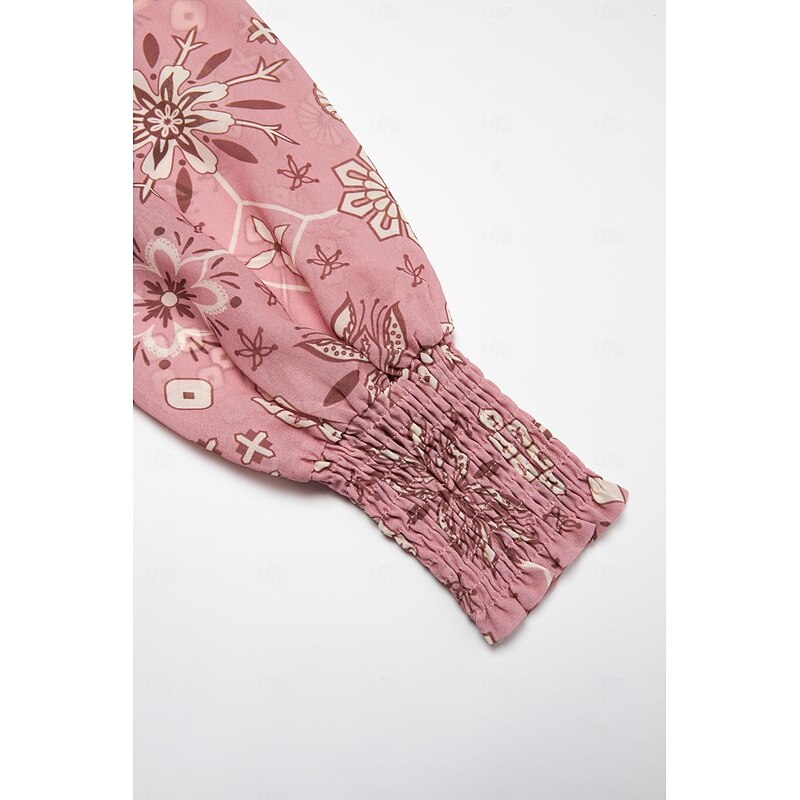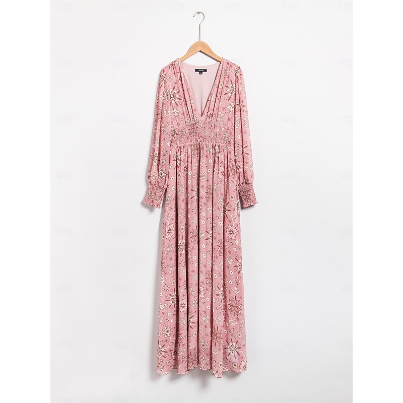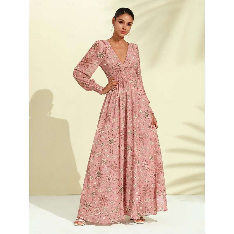 Highlights - Made from lightweight and stylish chiffon fabric - Features elegant long sleeves and a maxi dress length - Perfect for women's vacation and beach attire - Specifically designed as a beach dress with a trendy print - Comfortably fitting with an elastic waist and a flattering V neck neckline