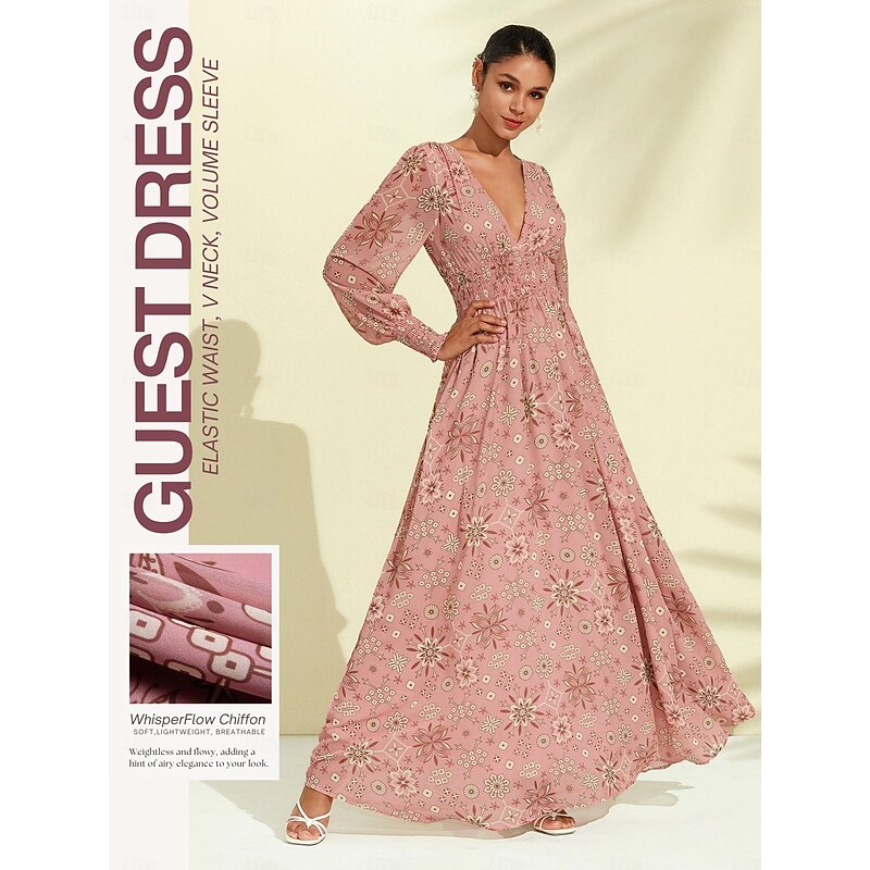 More information about Chiffon Wedding Guest Elastic Waist Floral Maxi Dress