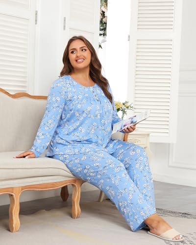 POPYOUNG Plus Size Womens Pajamas Set 2 Piece Pjs Sleepwear Long Sleeve Fall & Winter Lounge Outfits with Pockets L-5XL 5