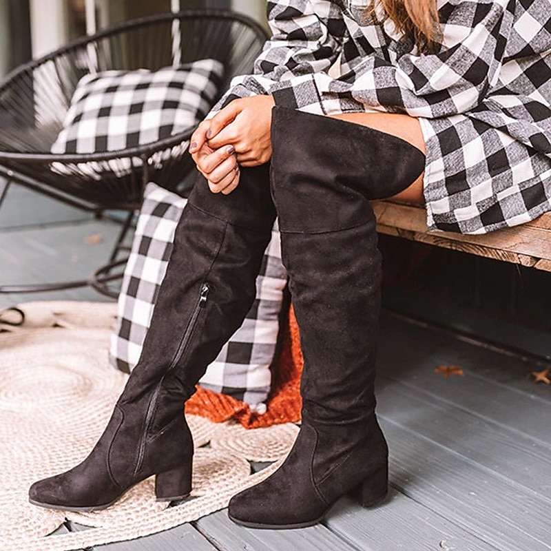 Women's Khaki Faux Suede Over-the-Knee Boots with Block Heel – Stylish and Comfortable for Fall and Winter Fashion 7