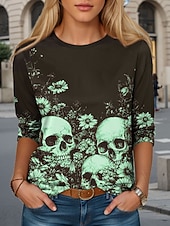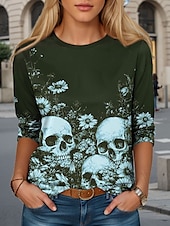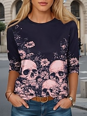More information about Halloween Women's T Shirt Skulls Crew Neck Long Sleeve Tunic Graphic Casual Round Neck Regular Tops Daily Print Pink Blue Purple Green Fall