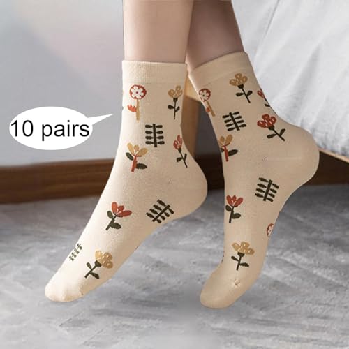Qianly 10 Pairs Socks Woman Socks Non Slip Machine Wash Soft Elastic Fashion Low Cut Socks Casual for Teens Women Gift Mom Girls, Beige 6