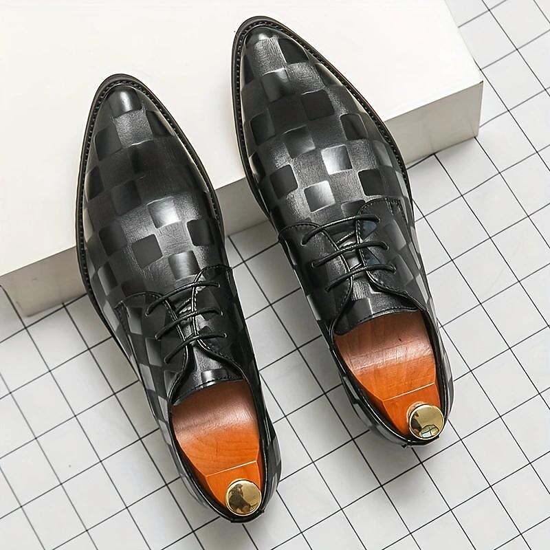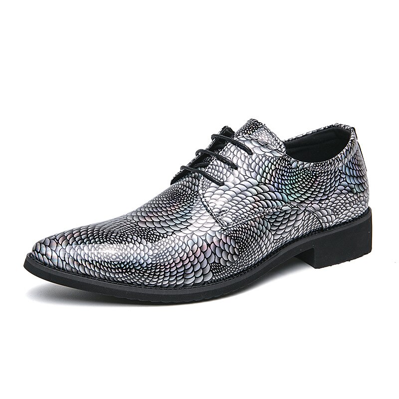 Highlights [Fabric and Material] : These men's Oxfords are crafted from high-quality leather, offering a textured design with a brogue finish that adds both style and durability. The rubber outsole ensures comfort and flexibility, making them perfect for long wear. [Silhouette] : Designed as stylish booties/ankle boots, these shoes feature a classic round toe and a low block heel, providing a comfortable and stable fit for everyday wear. [Design Highlights] : The shoes boast a unique spliced embellishment with a glossy, metallic finish in silver and black hues, creating a modern and luxurious appeal. The lace-up closure offers an adjustable fit, while the overall brogue design contributes to their timeless elegance. [Occasions and Usage] : Versatile and fashionable, these Oxfords are ideal for daily wear or casual outings. Whether you’re heading to a social gathering or a day at the office, these shoes add a bold, stylish statement to any outfit. [Size Range] : Available in a variety of sizes to ensure the perfect fit, from US6 to US12, making it easy to select your usual size for a secure and comfortable experience.