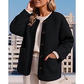 More information about Women's Winter Coat Polar Fleece Jacket Buttons with Pockets Long Sleeve Top Athleisure Fall Solid Colored Warm Hiking Outdoor Travel Sportswear Activewear Wine Red Black White