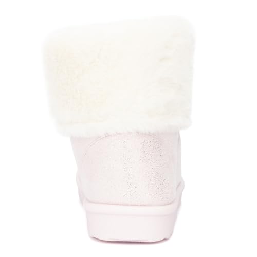 Olivia Miller Kid's Girl Fashion Shoes, Sparkling Stardust Shimmer Faux Suede w Fur Rubber Sole Slip On Round Toe Winter Snow Casual Classic Pull On Slipper Bootie Ankle Boots 6
