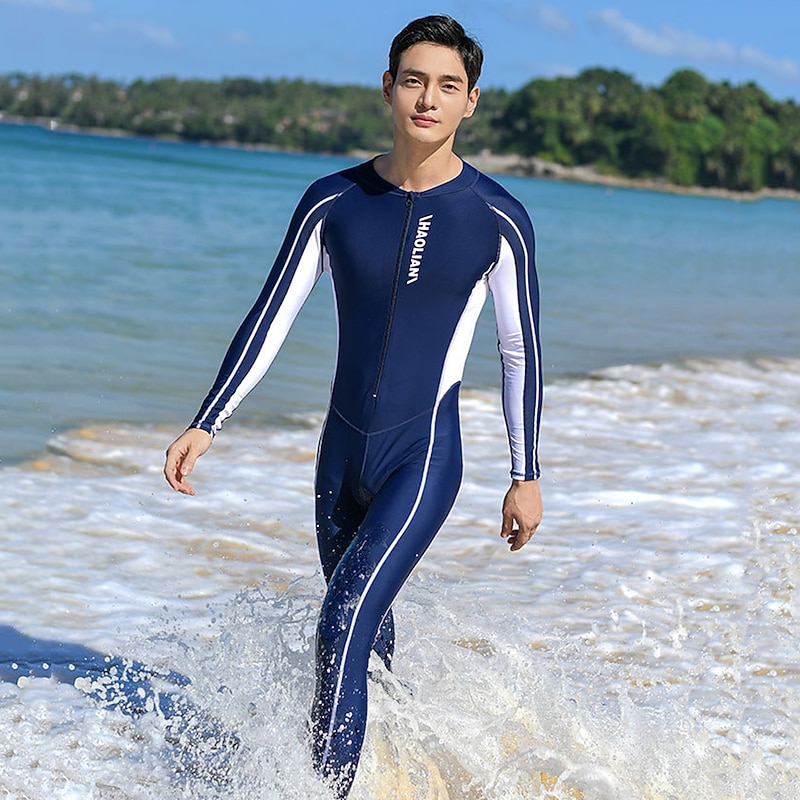 HOT ! Men's Rash Guard Dive Skin Suit Full Body Swimwear UPF50+ Front Zip Bathing Suit UV Sun Protection Breathable High Elasticity Long Sleeve - Swimming Diving Surfing Snorkeling Patchwork